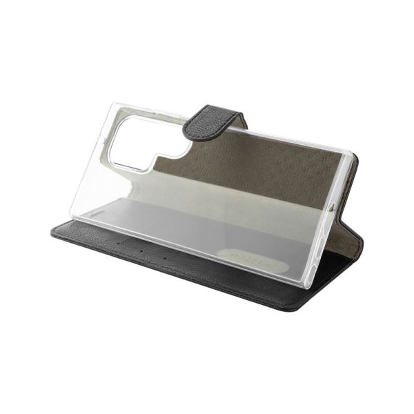 Az elülső rész kinyitása után egy nagyobb zseb található a bankjegyek számára és három kisebb rekesz, amelyekben a hitelkártyák tárolhatók. Mágneses zár biztosítja a tok biztonságos zárását. A nyitott tok vízszintesen állvány helyzetbe állítható a kényelmes videózás érdekében.