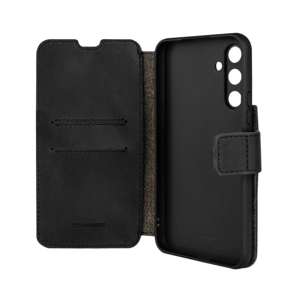 A valódi marhabőrből kézzel készített FIXED ProFit tok elegáns és praktikus kiegészítő mobiltelefonja számára. Megvédi telefonját az esetleges sérülésektől, miközben elegendő helyet biztosít dokumentumainak, hitelkártyájának és néhány bankjegynek. A ProFit tokot pontosan a telefon modelljéhez tervezték, a belső szilikon tálca lemásolja a készülék formáját, és szabad hozzáférést biztosít az összes vezérlőgombhoz, csatlakozóhoz és a hátoldalon lévő kamerához. Az elülső, csuklós rész biztonságosan védi a kijelzőt, és mágneses zárással rögzíthető. A tok kinyitása után a belső oldalon két zseb található a hitelkártyák számára, valamint egy nagyobb bankjegyzseb.