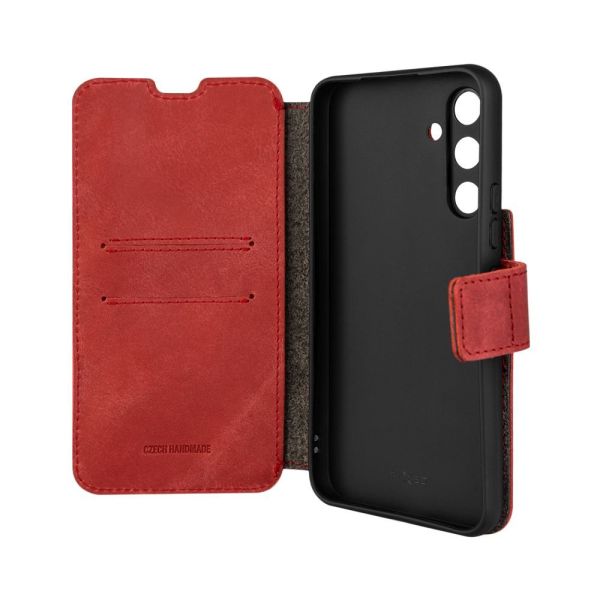 FIXED ProFit oldalra nyíló telefontok kézzel varrott valódi bőr, Samsung Galaxy A35 5G készülékhez, piros, FIXPFIT2-1262-RD