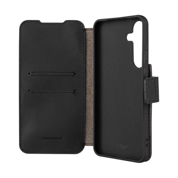FIXED ProFit oldalra nyíló telefontok kézzel varrott valódi bőr, Samsung Galaxy S25+ készülékhez, fekete
