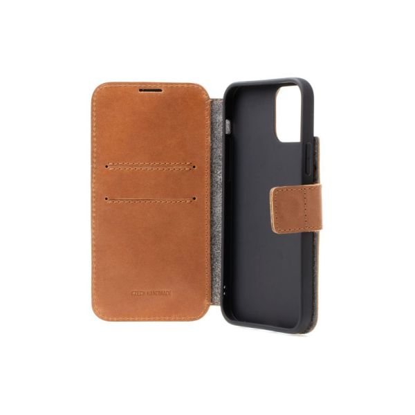 Az elülső kinyithatós rész biztonságosan védi a kijelzőt, és mágneses zárral záródik. A tok kinyitása után a belső oldalon két zsebet talál a bankkártyák számára és egy nagyobb bankjegyzsebet.