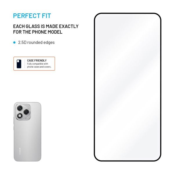 A kiváló minőségű FIXED Full-Cover edzett üveg teljes felületi tapadással biztosítja mobiltelefonja kijelzőjének maximális védelmét. Megakadályozza az esetleges sérüléseket repedt vagy karcos kijelző formájában. A 2,5D kialakításnak köszönhetően az üveg a teljes kijelzőfelületet lefedi egészen a szélekig. A hagyományos 2,5D üveggel szembeni előnye a telefon kijelzőjének teljes felületén való tapadás, így az üveg tökéletesen illeszkedik, és nem képez térképeket. Emellett jobb az érintésérzékenysége is. A csomag mindent tartalmaz, ami a könnyű beszereléséhez szükséges. A FIXED Full-Cover üveggel telefonja teljes mértékben védve van az ütődésektől, karcolásoktól és szennyeződésektől.