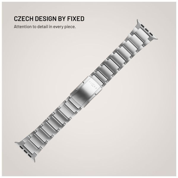 A FIXED titán szíj egy stílusos, mégis rendkívül tartós kiegészítő az okosórádhoz. Prémium minőségű titánból készült, kivételes szilárdságot és könnyűséget kínál hipoallergén tulajdonságokkal kombinálva, így ideális érzékeny bőrre és egész napos viseletre. A PVD felületkezelés matt, elegáns megjelenést kölcsönöz, miközben növeli a karc- és korrózióállóságot. A finom tűvel ellátott, levehető láncszemekből álló állítható rendszernek köszönhetően a szíj a maximális kényelem érdekében pontosan a csuklóhoz igazítható. A rozsdamentes acél csatlakozók és kapcsok kiegészítik az általános prémium megjelenést, és megbízható illeszkedést biztosítanak a csuklón. A FIXED titán szíj tökéletes választás azok számára, akik időtlen stílust, kényelmet és tartósságot keresnek egyben.