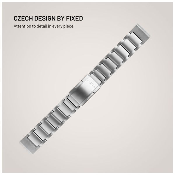A FIXED titán szíj egy stílusos, mégis rendkívül tartós kiegészítő az okosórádhoz. Prémium minőségű titánból készült, kivételes szilárdságot és könnyűséget kínál hipoallergén tulajdonságokkal kombinálva, így ideális érzékeny bőrre és egész napos viseletre. A PVD felületkezelés matt, elegáns megjelenést kölcsönöz, miközben növeli a karc- és korrózióállóságot. A finom tűvel ellátott, levehető láncszemekből álló állítható rendszernek köszönhetően a szíj pontosan a csuklóhoz igazítható a maximális kényelem érdekében. A rozsdamentes acél csatlakozók és kapcsok kiegészítik az általános prémium megjelenést, és megbízható illeszkedést biztosítanak a csuklón. A FIXED titán szíj tökéletes választás azok számára, akik időtlen stílust, kényelmet és tartósságot keresnek egyben.