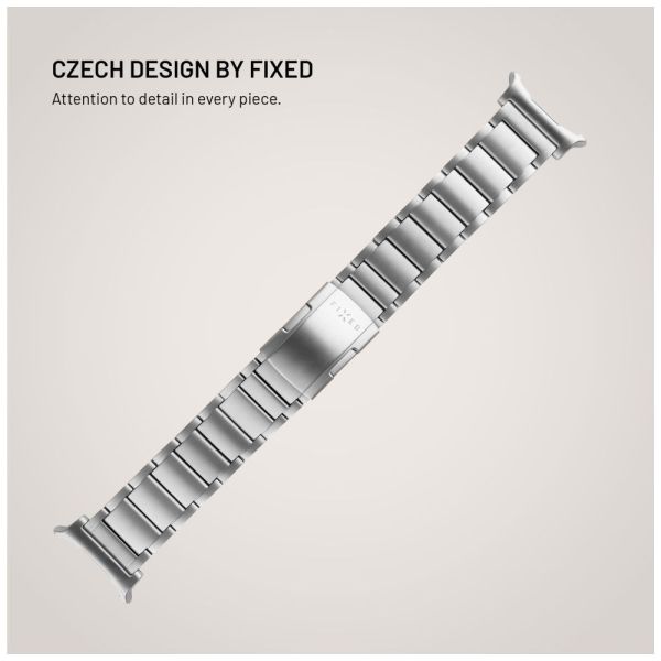 A FIXED titán szíj egy stílusos, mégis rendkívül tartós kiegészítő az okosórádhoz. Prémium minőségű titánból készült, kivételes szilárdságot és könnyűséget kínál hipoallergén tulajdonságokkal kombinálva, így ideális érzékeny bőrre és egész napos viseletre. A PVD felületkezelés matt, elegáns megjelenést kölcsönöz, miközben növeli a karc- és korrózióállóságot. A finom tűvel ellátott, levehető láncszemekből álló állítható rendszernek köszönhetően a szíj a maximális kényelem érdekében pontosan a csuklóhoz igazítható. A rozsdamentes acél csatlakozók és kapcsok kiegészítik az általános prémium megjelenést, és megbízható illeszkedést biztosítanak a csuklón. A FIXED titán szíj tökéletes választás azok számára, akik időtlen stílust, kényelmet és tartósságot keresnek egyben.