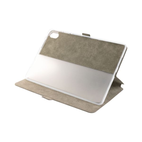 Elegáns, vékony és praktikus FIXED Topic könyv típusú tok, amelyet kifejezetten a táblagépedhez terveztek. A tok kiváló minőségű és tartós PU bőrből készült, a széleknél varrott, ami garantálja a tablet megfelelő védelmét a sérülésektől. A tok csuklós elülső része eltakarja a táblagép kijelzőjét, és mágnessel zárva rögzíti. A csukható rész belső oldalán egy praktikus zseb található egy hitelkártya számára. A tok belsejében található átlátszó TPU tálca pontosan az adott táblagépmodellhez készült. Minden vezérlőgomb teljesen hozzáférhető marad, ahogyan a töltőcsatlakozó és a hangszórók is. Emellett a borítás zselés anyaga megkönnyíti a táblagép behelyezését és eltávolítását. A tok hátoldalán egy nyílás található a kamera számára. A kifinomult kialakításnak köszönhetően a tok állványként is praktikus pozícióba állítható, amit különösen filmnézés vagy videohívás közben fog értékelni. A FIXED Topic tokkal elegendő védelmet kap a táblagépének elegáns és stílusos kivitelben.