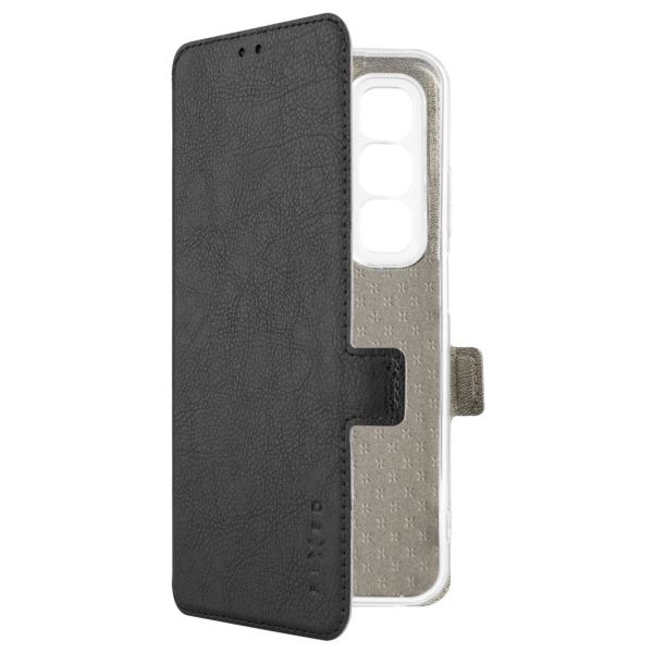 Elegáns, vékony és praktikus FIXED Topic könyvszerű tok, amelyet kifejezetten az Ön telefonjához terveztek. A tok kiváló minőségű, strapabíró, szélein varrott PU-bőrből készült, ami megfelelő védelmet biztosít a telefonnak a sérülésektől. A tok felnyíló elülső része eltakarja a telefon kijelzőjét, és mágneses záródással rögzíthető. A felnyíló rész belsejében egy praktikus zseb található hitelkártyák számára. A tok belsejében található átlátszó TPU betét pontosan az adott telefonmodellhez készült. Az összes vezérlőgomb, valamint a töltőcsatlakozó és a hangszórók is teljes mértékben hozzáférhetők maradnak. Ezen felül a tok gél anyaga megkönnyíti a telefon behelyezését és kivételét. A tok hátulján nyílás található a kamera vagy az ujjlenyomat-olvasó számára. Kifinomult kialakításának köszönhetően a tok állványként is használható, ami különösen jól jön filmnézés vagy videohívás közben. A FIXED Topic tok elegáns és stílusos kialakításával megfelelő védelmet biztosít telefonjának.