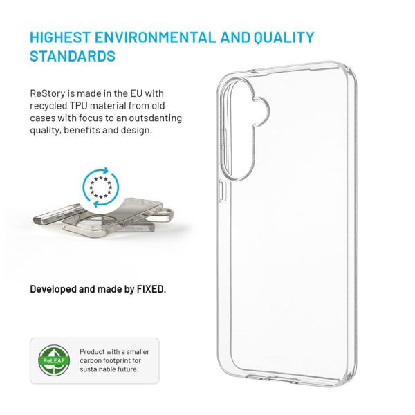 A FIXED ReStory átlátszó TPU borítása újrahasznosított anyagból készült, amely a környezeti fenntarthatóságot magas minőséggel ötvözi. Az újrahasznosított borítás megkülönböztethetetlen egy új TPU-borítástól, ugyanakkor teljes 360°-os védelmet nyújt telefonodnak az ütések, karcolások és szennyeződések ellen. Minden egyes darab egy adott készüléktípushoz készült, így a kivágások pontosan lemásolják a csatlakozókat, gombokat és a kamerát. A kijelző és a kamera körüli megemelt élek további védelmet nyújtanak a karcolások ellen. Az átlátszó kialakítás kiemeli a telefont, a hozzáadott UV-védelem pedig biztosítja, hogy az átlátszóságot hosszú használat után is megőrzi. A szilárdabb fogást biztosító csúszásgátló kezelés csökkenti annak kockázatát, hogy véletlenül kicsússzon a kezedből. Emellett a borítás teljes mértékben kompatibilis a védőszemüveggel és a vezeték nélküli töltéssel.