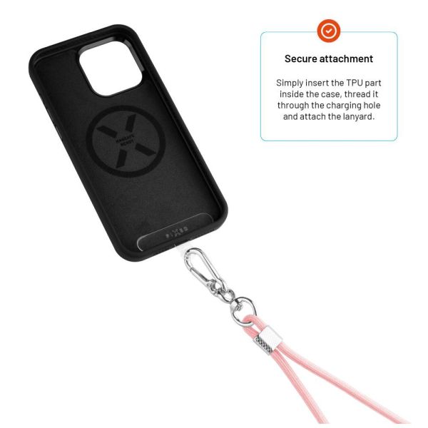 Univerzális FIXED NeckUni zsinór a telefon kényelmes hordozásához a nyak körül, a vállon vagy keresztben. A nyaklánc tartalmaz egy TPU-lemezt, amelyet a telefon és a hátlap közé helyez, a lemez fülét átfűzi a töltőnyíláson, magát a nyakláncot pedig egy karabinerrel rögzíti. Így a telefon biztonságosan rögzül a zsinórhoz. A fém alkatrészek segítségével könnyedén beállíthatja a zsinór hosszát a változó viselethez. Nem kell a telefont a zsebében vagy a táskájában elrejtve hordania, a FIXED NeckUni segítségével mindig kéznél van a telefonja, amikor csak szüksége van rá.