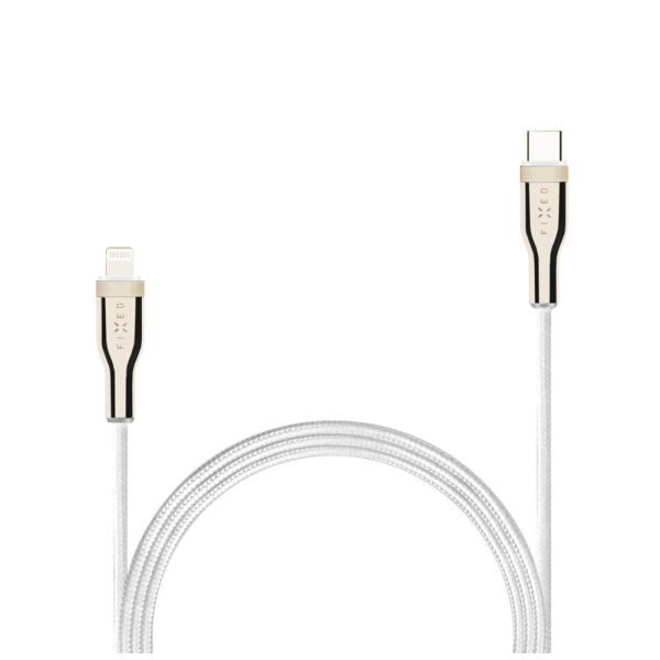 FIXED USB-C/Lightning kábel, FIXDB-CL2-WH, fonott szövet borítás, MFi tanúsítvány, PD 3.0, 2m, fehér