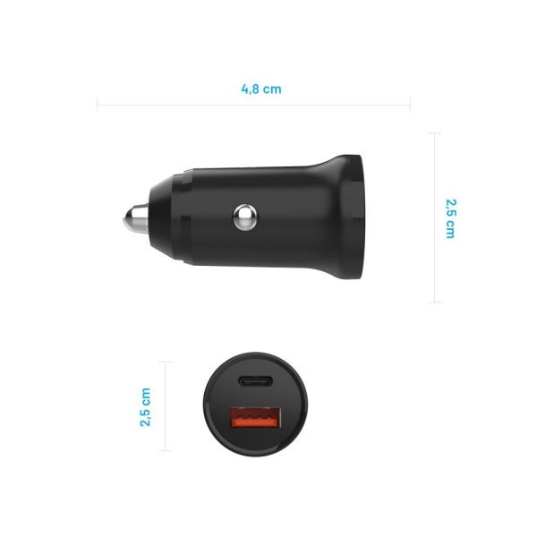 Nagy teljesítményű univerzális autós töltő FIXED minimalista kialakításban, alkalmas telefon vagy más eszköz töltésére vezetés közben. A szivargyújtó aljzaton keresztül történő töltésre szolgál, és személygépkocsikhoz és teherautókhoz alkalmas. A kábel csatlakoztatására egy gyors USB-C port tápellátással és Power Delivery 3.0 támogatással, valamint egy USB-A port áll készen. Maga a töltő felismeri a készüléked számára szükséges energiát, és akár 20 W-os teljesítményt biztosít. Alkalmas kiegészítő telefon, táblagép, GPS-navigáció töltésére vagy az autóban lévő töltőtartókhoz való csatlakoztatásra. Stílusos kialakításával tökéletesen illeszkedik az autó belsejébe, minimalista méreteinek köszönhetően nem áll útban. A túlmelegedés és rövidzárlat elleni védelem magától értetődő. A FIXED autós töltő ideális megoldás a készülékek kényelmes, gyors és biztonságos töltéséhez útközben.