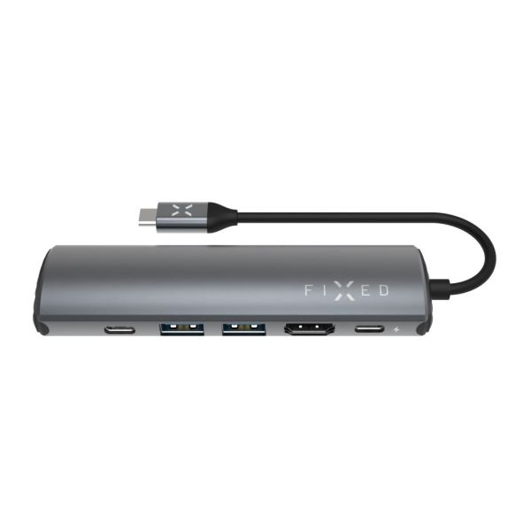 Az alumínium FIXED HUB Pro teljes értékű munkaállomássá alakítja a MacBookot vagy más USB-C csatlakozóval rendelkező eszközt. A kompakt test elrejt egy USB-C portot a tápellátáshoz Power Delivery 3.0 támogatással, egy HDMI csatlakozót, egy RJ-45 portot a hálózati kábel csatlakoztatásához, 2x USB-A 3.2 Gen 2 és egy adat USB-C 3.2 Gen 2 csatlakozót az akár 10 Gb /with sebességű adatátvitelhez. Így kényelmesen csatlakoztathatsz projektorokat, 4K monitorokat, külső meghajtókat, egereket és billentyűzeteket és egyéb tartozékokat, és egyidejűleg töltheted eszközeidet az USB-C PD port segítségével akár 100 W-os teljesítményű töltéssel. Az alumínium anyag használatával sikerült elérni az egyes csatlakozók elektromágneses interferenciájának jobb árnyékolását, így biztosítva az egyes portok hibátlan csatlakoztathatóságát. Ugyanakkor az alumínium felület jobban ellenáll a karcolásoknak, Space Gray színével pedig tökéletesen illeszkedik számos modern eszközhöz. A hub 20 cm hosszúságú integrált kábellel rendelkezik, amely megkönnyíti a munkaasztal elrendezését. Kompakt és megbízható FIXED HUB A laptopjával való munka javításához otthon, az irodában és útközben is.