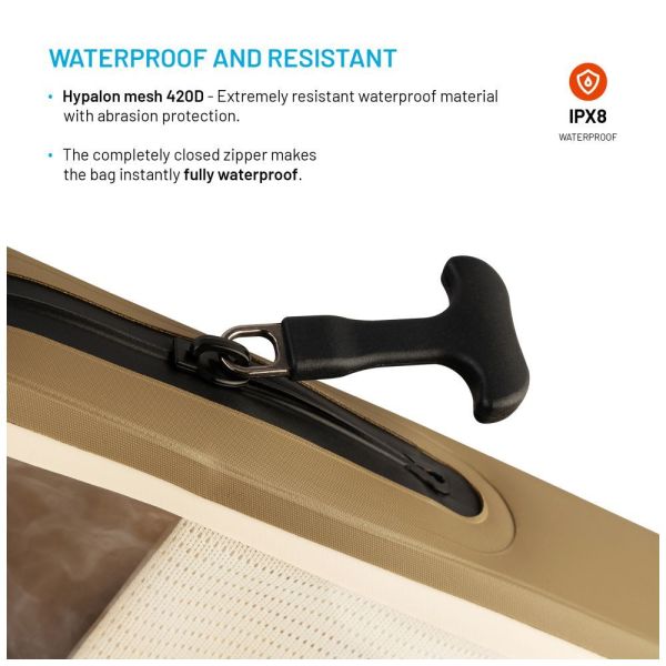 - rendkívül tartós és vízálló Hypalon hálós 420D anyagból