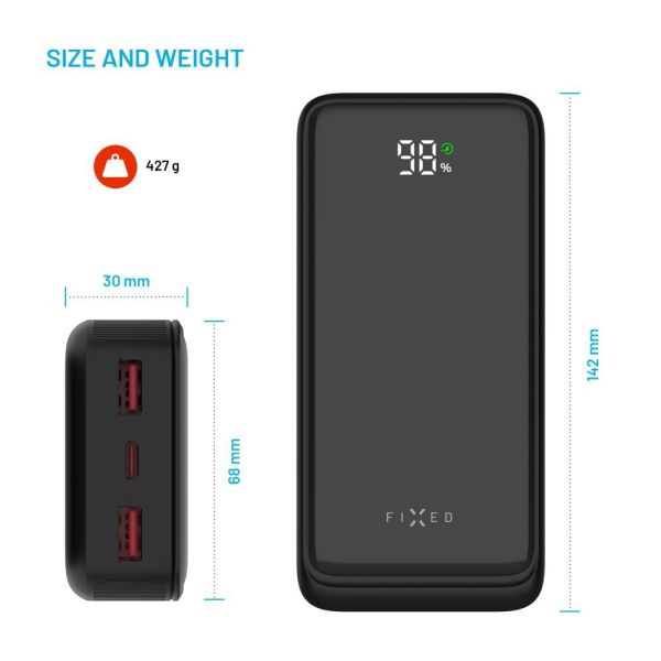 A FIXED Zen2 20 power bank megbízható tartalék áramforrás, ideális utazáshoz és mindennapi használatra. A 20 000 mAh kapacitással megbízhatóan tölti telefonját, fejhallgatóját, óráját vagy más eszközeit. A két USB-A és egy USB-C portnak köszönhetően akár három eszköz egyidejű töltését is lehetővé teszi. Az USB-C port támogatja a Power Delivery 3.0 gyors töltést is, akár 20 W-os teljesítménnyel, amely automatikusan elindul, amikor az eszköz csatlakoztatva van. Az elegáns fényes felületű, tiszta LCD-kijelző tájékoztat az aktuális kapacitás állapotáról. Maga a powerbank az USB-C porton keresztül könnyedén feltölthető akár 18 W-os teljesítménnyel, még akkor is, ha a powerbank éppen egy másik eszközt tölt. Kompakt méreteinek és kis súlyának köszönhetően a FIXED Zen2 20 power bank könnyedén elfér bármelyik kézitáskában vagy hátizsákban. Ezért ideális útitárs, amely bárhol és bármikor áramot biztosít eszközeidnek.