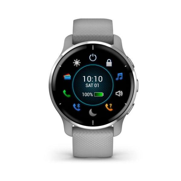 Tele a kezed? Semmi gond! Használd a párosított okostelefonod hangvezérlését (Siri, Google Assistant vagy Bixby) a Venu® 2 Plus-on keresztül szöveges üzenetek írásához és megválaszolásához, kérdéseket tehetsz fel és akár kompatibilis okosotthoni eszközeidet is vezérelheted.