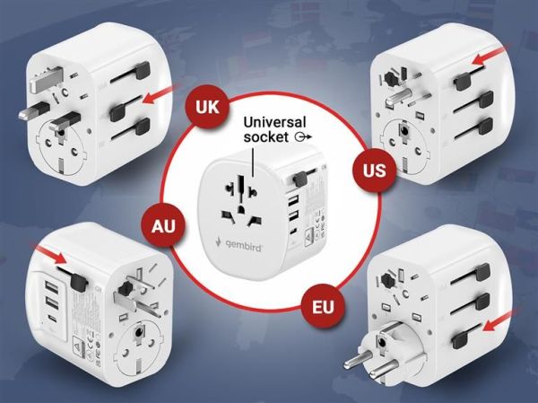Univerzális utazási adapter, amely több mint 200 országban használható