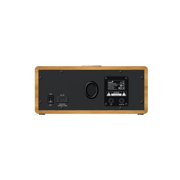 A Genius SP-HF505BT hangszóró ideális alapja lesz otthoni hangrendszerének. Tökéletes zenehallgatáshoz, filmek, videók megtekintéséhez vagy játékhoz. Fából készült szerkezetének köszönhetően elegáns megjelenésű, és természetes, torzításmentes hangzást produkál, amely összesen 20 W RMS teljesítményt nyújt. A Bluetooth technológián keresztül történő vezeték nélküli csatlakoztathatóság lehetővé teszi, hogy kényelmesen, vezeték nélkül csatlakozhasson okostelefonjához, táblagépéhez vagy laptopjához. Természetesen egy AUX bemenet is rendelkezésre áll más eszközök csatlakoztatásához, illetve egy fejhallgató kimenet. A hangszóró tetején található egyszerű gomb szolgál a vezérlésre.