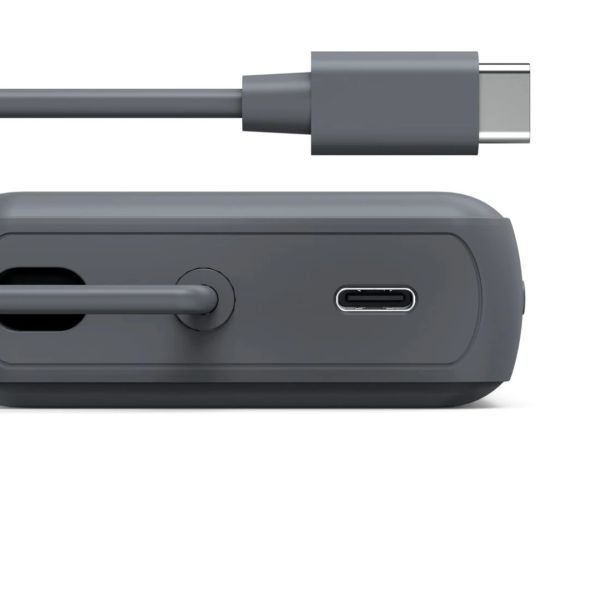 Be- és kimenet: USB-C integrált kábelen keresztül, hossza 6,5 cm - amikor nincs használatban, a dugó biztonságosan elrejthető a mélyedésben