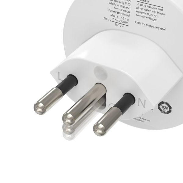 - Lehetővé teszi elektromos készülékek csatlakoztatását svájci, olasz és brazil konnektorrendszerű országokban