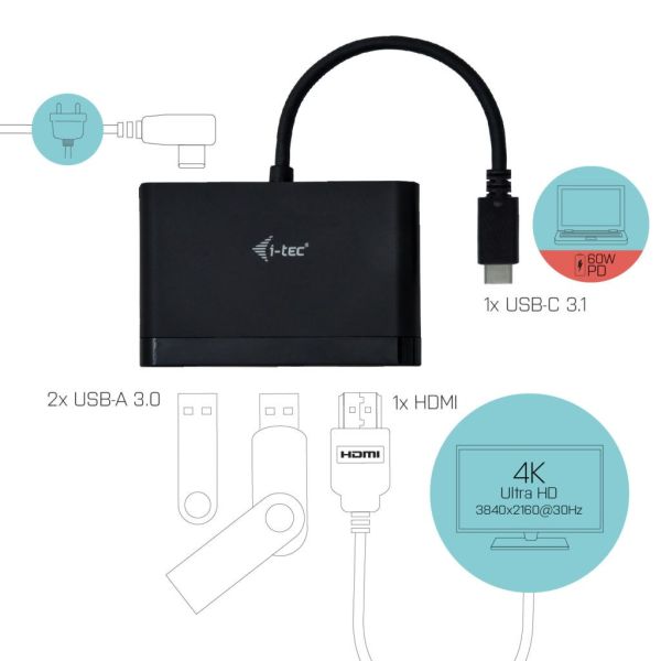 I-TEC USB C HDMI Travel Adapter PD/Data Black