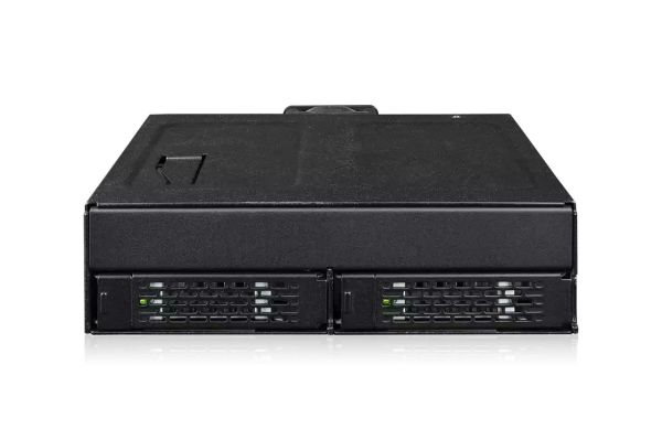 A ToughArmor MB105VP-B egy 5,25 hüvelykes, strapabíró, teljes fémből készült, cserélhető, kettős U.2/U.3 NVMe PCIe 4.0 SSD mobil rack burkolat, amely akár 64 Gbps adatátviteli sebességet is támogat Slimline SAS (SFF-8654-8i) csatlakozáson keresztül egyetlen 5,25 hüvelykes (optikai meghajtó) rekeszben. Ezenkívül az innovatív cserélhető meghajtótálca kialakítás lehetővé teszi a felhasználók számára, hogy a rendszer elülső részéről könnyedén hozzáférjenek az U.2 vagy U.3 meghajtókhoz.