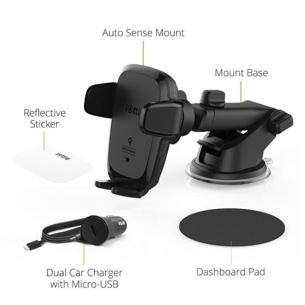 - universal mount with automatic clamping: proximity sensor detects and secures smartphones