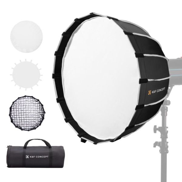 A K&F Concept 120cm parabola hexadecagonális softbox egy kiváló minőségű világítási eszköz, amelyet kifejezetten stúdió- és helyszíni fotózásokhoz terveztek. A Bowens mount kompatibilitás, a méhsejt rács és a diffúzorok révén biztosítja a professzionális minőségű megvilágítást minden körülmények között.