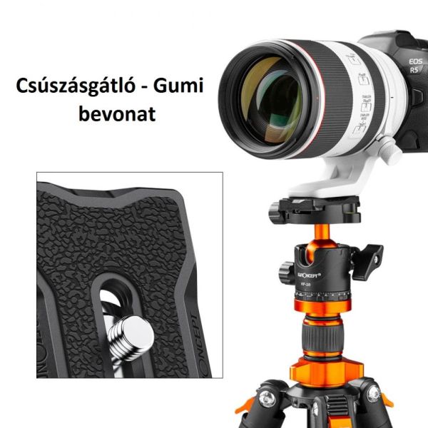 -Nagyobb gumifelület: a gyorskioldó lemez gumibevonata nagy érintkezési felülettel rendelkezik, amely növeli a súrlódást, javítja a fogást és megakadályozza a kamera leesését.