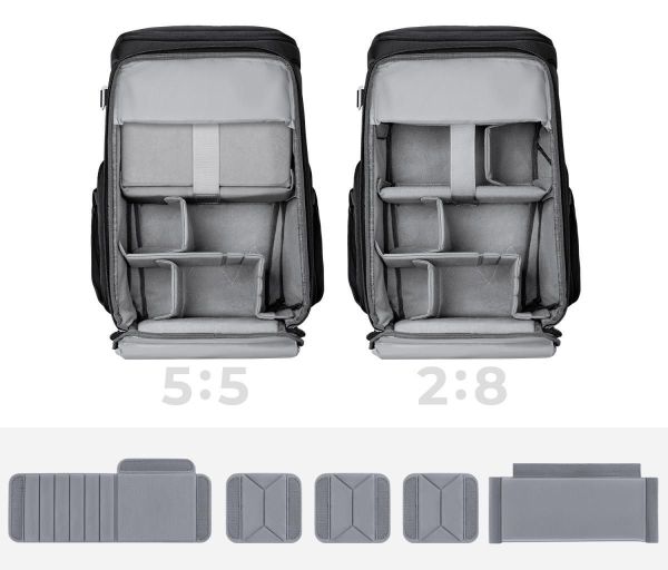 【Magic Bin Design】 Ez a fotós hátizsák 5:5 és 2:8 térben valósítható meg felfelé vagy lefelé tolva a különböző igényekhez. Alkalmas kültéri fotózáshoz, városi utcai fotózáshoz, szabadtéri portrékhoz, VIOG fotózáshoz stb.