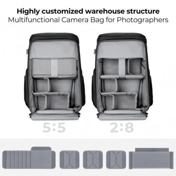 Ez a fényképező hátizsák nagy kapcítással rendelkezik. Alkalmas kültéri fotózásra, városi utcai fotózásra, kültéri portréfotózásra, VIOG fotózásra is.