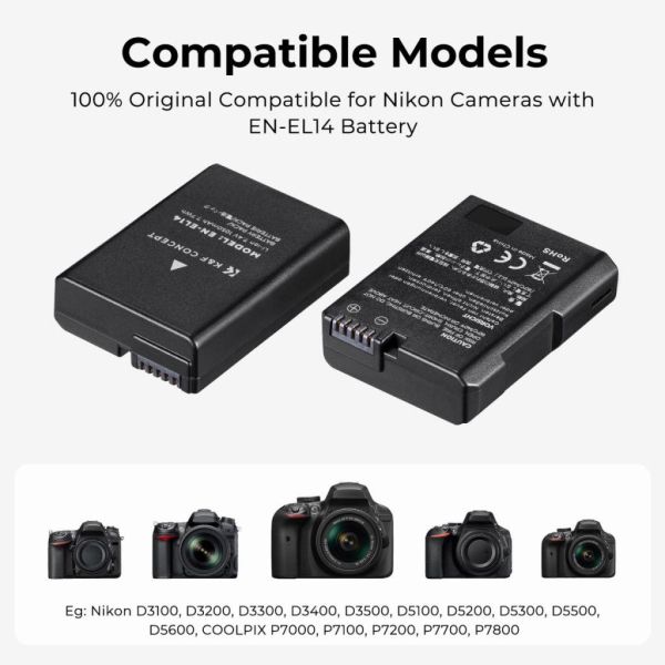 A K&F Concept EN-EL14 akkumulátor kiváló alternatív energiaforrás a Nikon DSLR fényképezőgépekhez, amelyek ezt a népszerű típusú akkut használják. A 1050mAh kapacitású lítium-ion akkumulátor megbízható, hosszú üzemidőt biztosít, legyen szó fotózásról vagy videózásról.
