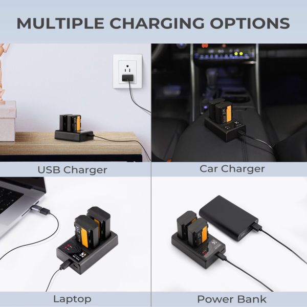 Intelligens töltés: Az LCD kijelző megjeleníti az akkumulátor töltési állapotát, és a töltési folyamat során intelligens chipet használ az akkumulátor hatékonyabb védelme érdekében; a dupla töltőport egyszerre két akkumulátort tud gyorsan tölteni, jelentős időt takarítva meg.