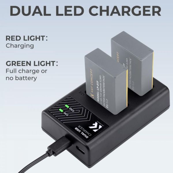 A dupla töltőport segítségével két LP-E17NH akkumulátort lehet egyszerre gyorsan tölteni, jelentősen megtakarítva ezzel az időt. 700mA töltőáramot biztosít egy akkumulátor töltésekor, és 500mA-t, amikor mindkét töltőhely foglalt.
