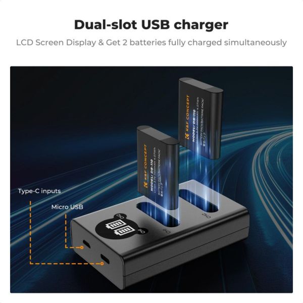 K&F Concept prémium töltő - kompatibilis Ricoh és Olympus kamerákkal
