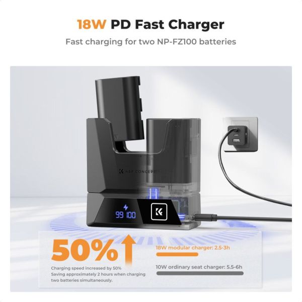 A K&F Concept hordozható moduláris dupla töltő ideális választás profi és hobbi fotósok számára, akik Canon LP-E6NH akkumulátorokat használnak. Praktikus, helytakarékos kialakítása, gyors töltési funkciója és intelligens kijelzője révén egyszerre biztosítja a hatékonyságot és a kényelmet.
