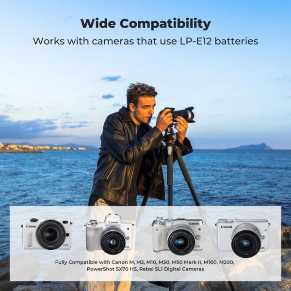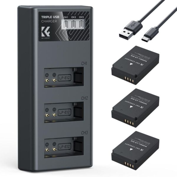 A K&F Concept LP-E12 akkumulátorkészlet ideális megoldás Canon felhasználóknak, akik megbízható és hordozható energiaforrást keresnek fényképezőgépük mellé. A szett három darab, nagy kapacitású (1100mAh) LP-E12 akkumulátort és egy tripla USB-C töltőt tartalmaz, amely LCD kijelzőn mutatja az aktuális töltöttségi szinteket.