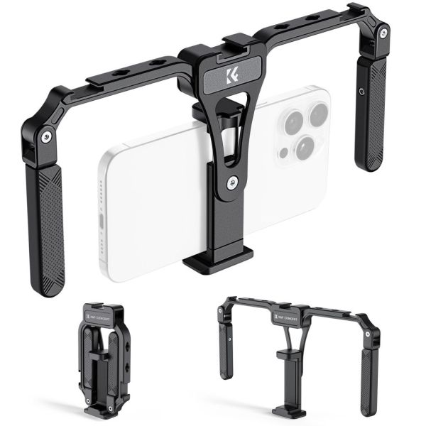 K&F Concept telefon rig egy sokoldalú és praktikus kiegészítő, amely ideális választás mobiltelefonos fotózáshoz és videózáshoz. Az univerzális keret összecsukható kialakítással rendelkezik, és három vakupapucs valamint állványmenet teszi lehetővé a különféle tartozékok rögzítését.