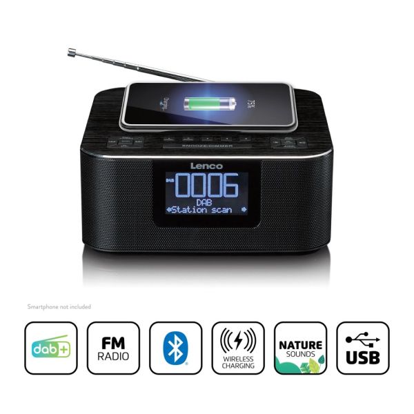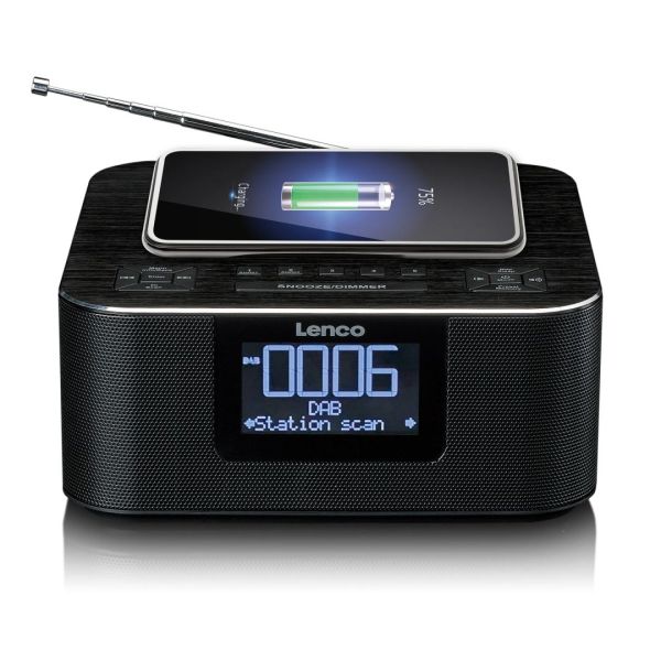 Lenco CR-625BK FM Clock Radio with Bluetooth and wireless charging Black