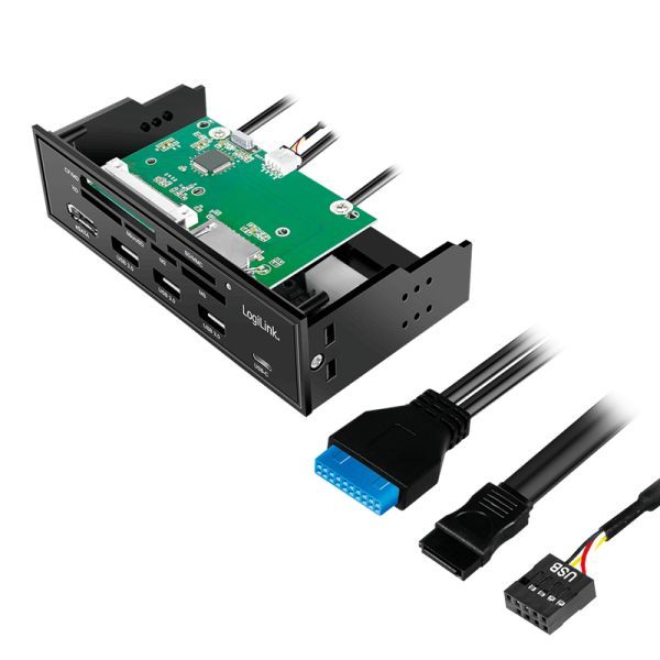 Logilink 5.25" multifunction front panel with 6-way card reader Black