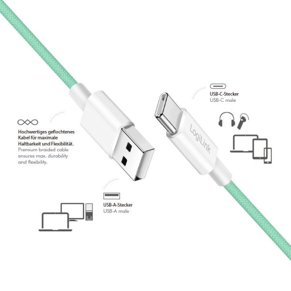 Ez a nejlonborítású adat- és töltőkábel ideális USB-C-csatlakozással rendelkező eszközök és a hagyományos USB-A-csatlakozóval rendelkező eszközök (laptopok, merevlemezek, hordozható akkumulátorok, fali/autós töltők) összekapcsolásához.