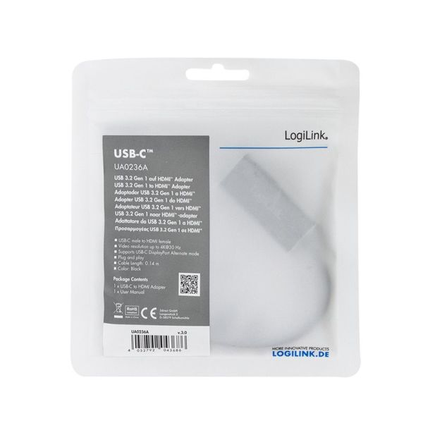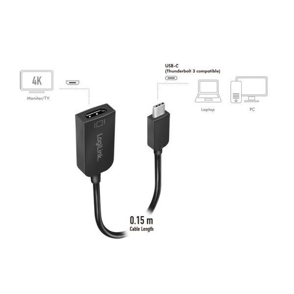 Termékinformáció "USB Type-C adapter, C/M to HDMI-A/F, 4K/30 Hz, fekete, 0,15 m" a LogiLink-től
