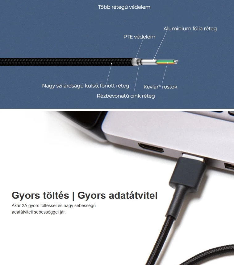 Mi Braided USB Type-C kábel 100cm - PIROS