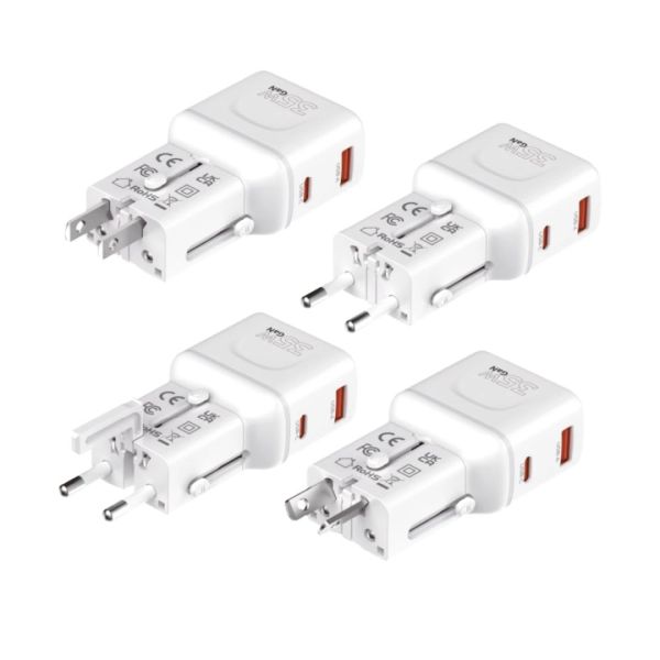 Beépített nemzetközi csatlakozókkal az adapter több mint 200 országban használható, beleértve az EU-t, az Egyesült Királyságot, az Egyesült Államokat és Ausztráliát.