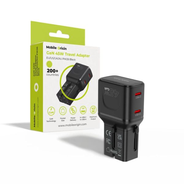 Utazzon korlátok nélkül, és tartsa készülékeit mindig feltöltve a forradalmian új Mobile Origin GaN 45W utazási adapterrel. Ez a kompakt és nagy teljesítményű adapter azoknak a modern kalandoroknak készült, akiknek megbízható töltésre van szükségük a világ bármely pontján.