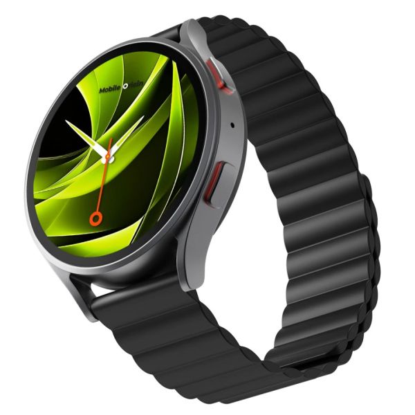 Innovatív és stílusos szíj, egyedülálló mágneses zárral és Quick Release rögzítőrendszerrel. Kiváló minőségű szilikonból és erős N52 mágnesekből készült, amelyek maximális kényelmet és biztonságos illeszkedést biztosítanak egész napos viselés és sportolás közben. A mágneses rendszernek köszönhetően folyamatos hosszúság-beállítást kínál 150–205 mm kerületű csuklókhoz.