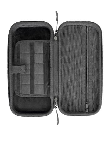Dedikált rekeszek a Switch konzol, a játékkártyák és a töltőkábel számára - minden egy helyen.
