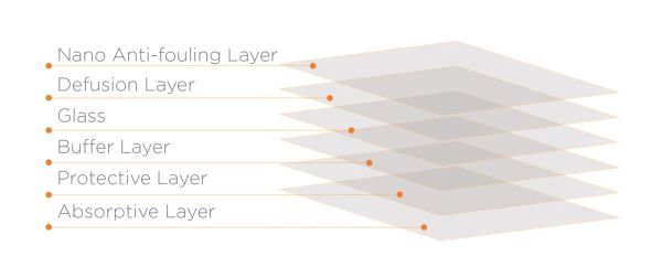 Az iPad narancssárga képernyővédője hat rétegből áll. Ez a rétegkombináció biztonságos védelmet nyújt a karcolások, ütődések és egyéb sérülések ellen, miközben megőrzi a tökéletes érintésérzékenységet és a képernyő tisztaságát.