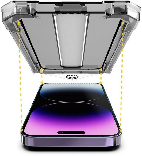Üvegfólia - Apple iPhone 14 Pro üvegfólia, 2.5D ívelés, 9H keménységgel, 0,3 mm üvegvastagsággal, a csomag részét alkotja: szerelőkeret, törlőkendő, alkoholos kendő, poreltávolító matrica és telepítőfólia.