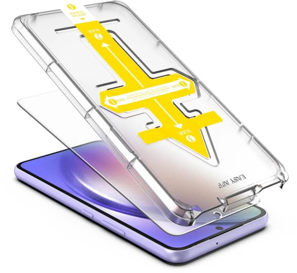 Üvegfólia - rendeltetése SAMSUNG Galaxy A55 5G, 2.5D ívelés, 9H keménység, fényes, 0,3 mm vastagság, a csomag tartalma szerelőkeret, törlőkendő, spatula és poreltávolító matrica