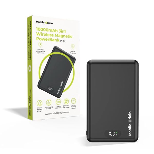 A Mobile Origin 10 000 mAh Premium Wireless PowerBank ideális megoldás a gyors és kényelmes töltéshez útközben. MagSafe támogatást kínál a biztonságos, akár 15 W-os vezeték nélküli töltéshez, USB-C kimenettel és akár 20 W-os Power Delivery technológiával. Kompakt méretei, alacsony súlya és egyértelmű LED töltésállapot-jelzője révén tökéletes választás mindennapi használatra és utazáshoz.